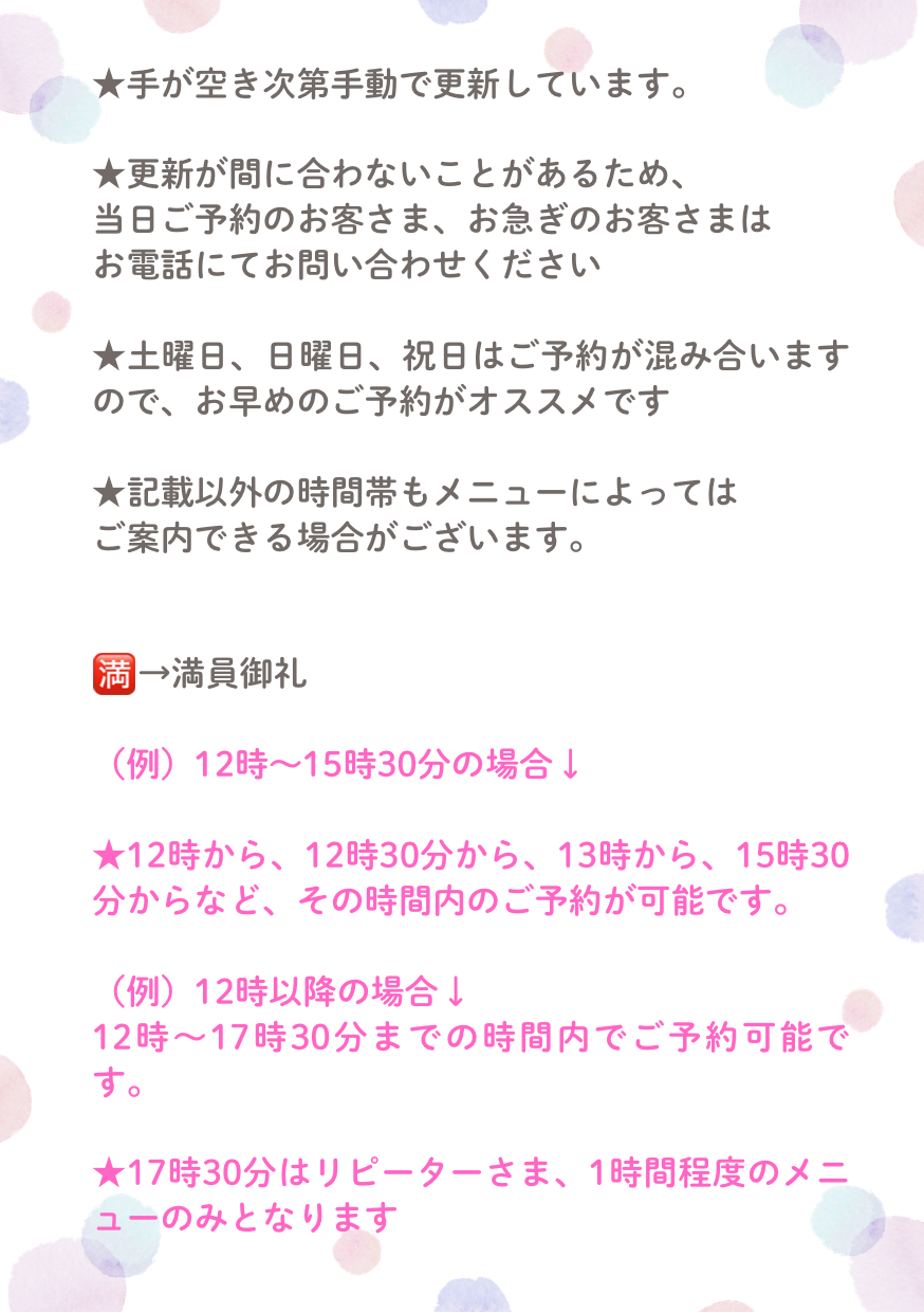 12月は混み合いますので、土日のご新規様のご予約は当日ご予約のみとさせていただきます。