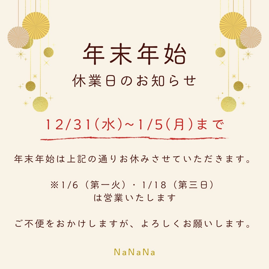 12月、年末年始営業日のお知らせ